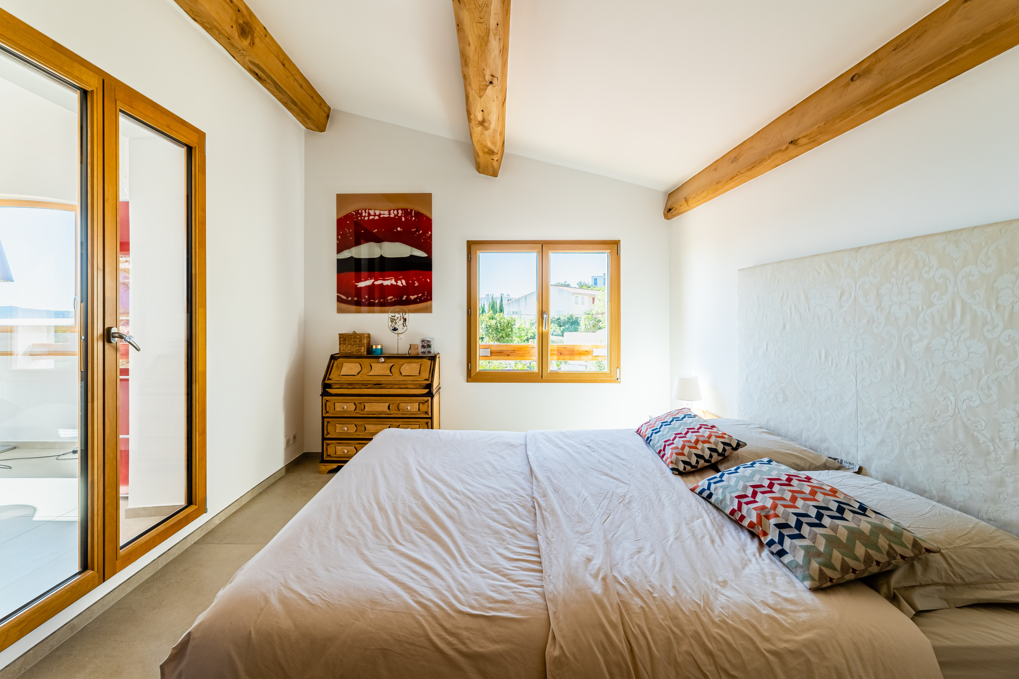À l'étage, vous découvrirez deux chambres, dont l'une avec dressing et l'autre bénéficiant d'une vue mer. La salle d'eau spacieuse est dotée d'un meuble vasque, d'une douche à l'italienne et de toilettes. Un bureau de 16m2 vous offrira un espace de travail idéal, tout en profitant de la vue imprenable sur la mer grâce à ses grandes ouvertures. Au rez-inférieur, vous trouverez une chambre de 9m2 et en sus, un garage de 23m2 avec rangements et dressing de 8m2, ainsi qu'un local chaufferie. Le terrain paysager de 600m2 est agrémenté d'une piscine chauffée, d'une terrasse et d'un boulodrome, invitant à la détente et aux loisirs.